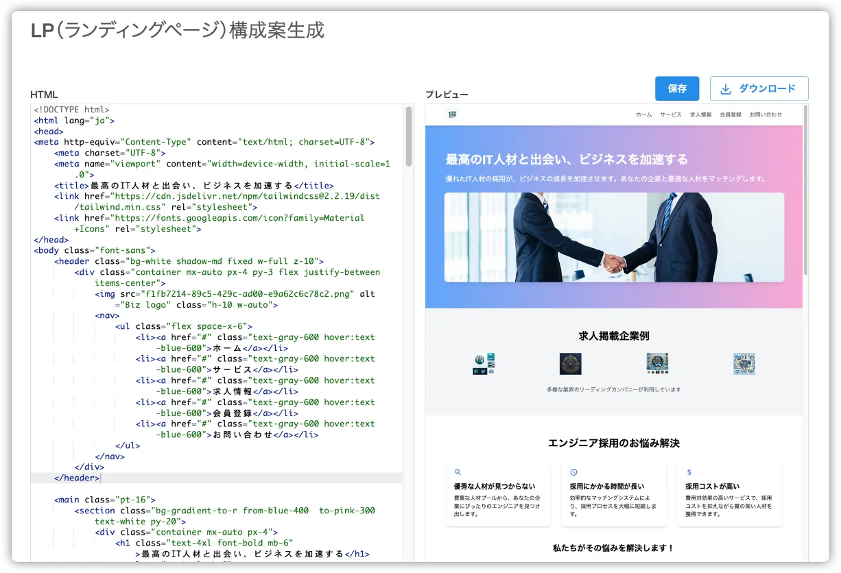 AIが検索上位ページを参考に魅力的なLP案を自動生成