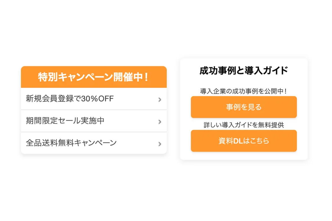 コンパクトな表示で、セールやお知らせなどの注目情報を効果的に伝えられます。