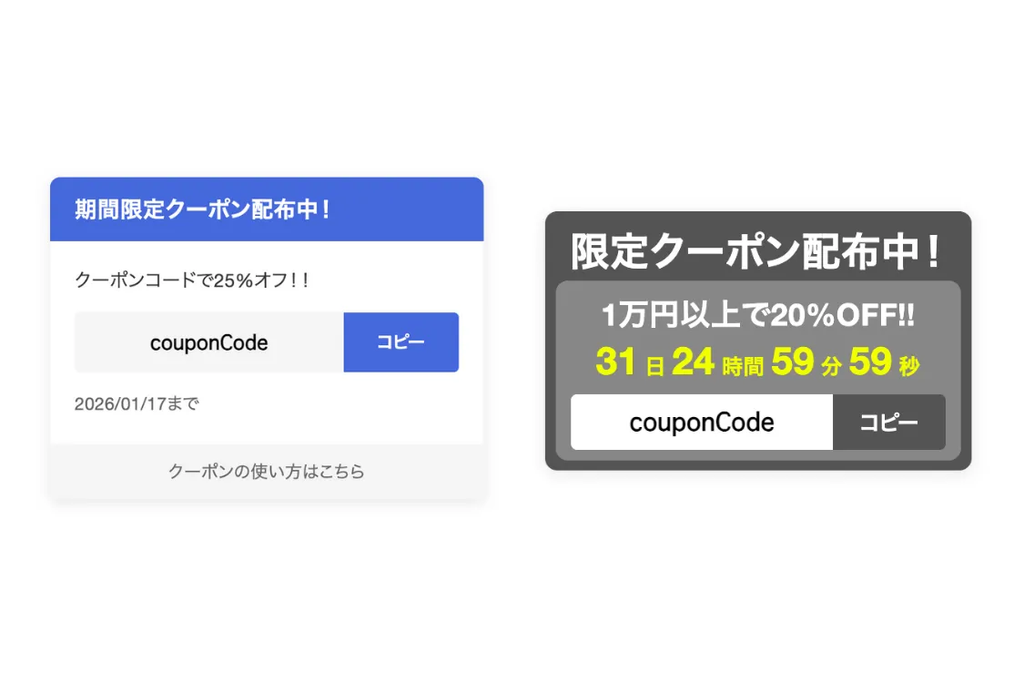 その場で確認・コピーできるクーポン表示で、機会損失を防ぎます。