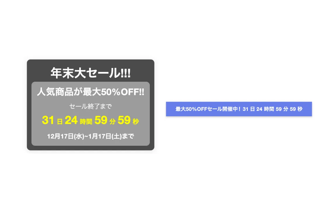 セールやキャンペーンの終了までの時間を表示し、ユーザーの意思決定を促します。