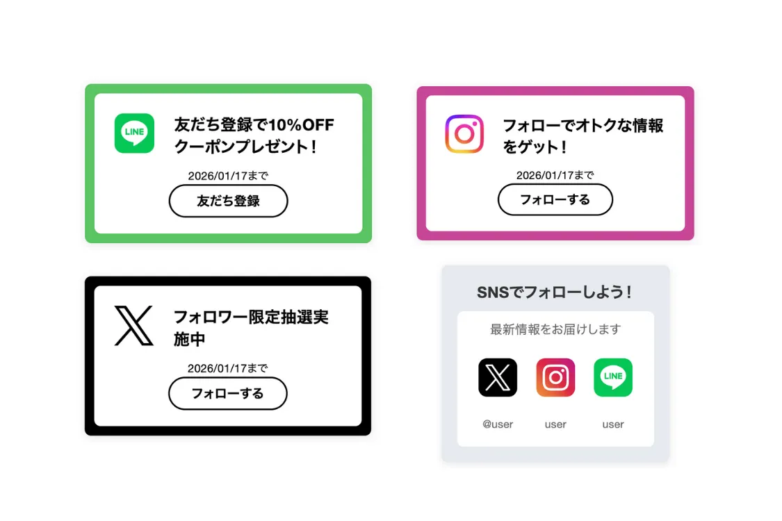 クーポン配布や限定情報など、フォローする理由を明確に伝えられます。