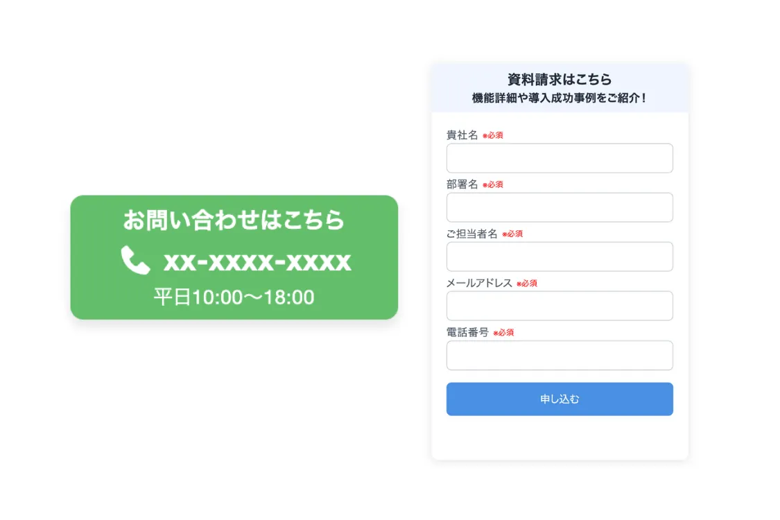 電話やフォームでの問い合わせ導線を分かりやすく表示し、検討段階に応じたアクションを促します。